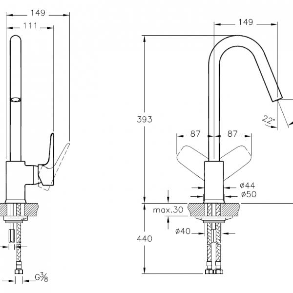 - Özel debi kısıcılı perlatör sayesinde maks. 5 L/dk su akışı sağlanmaktadır.