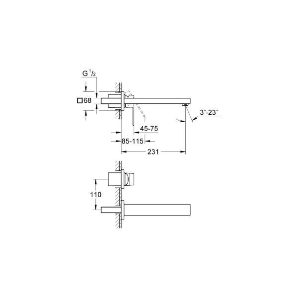 GROHE EUROCUBE – SU TASARRUFU SAĞLAYAN ZARİF DUVAR TİPİ 2 DELİKLİ BANYO BATARYASI