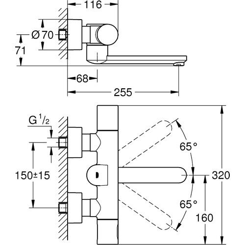 Grohe Eurosmart Cosmopolitan E Duvardan, Fotoselli ve Termostatik sıcaklık Kontrollü Lavabo Bataryası 36333000